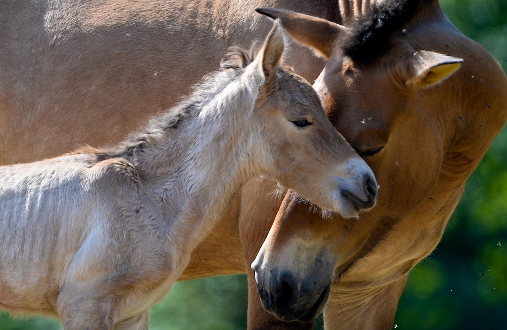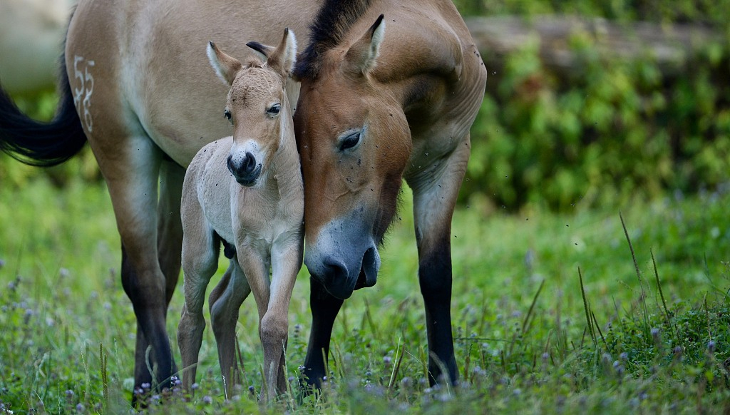 Przewalski's horse with its foal. /VCG Photo