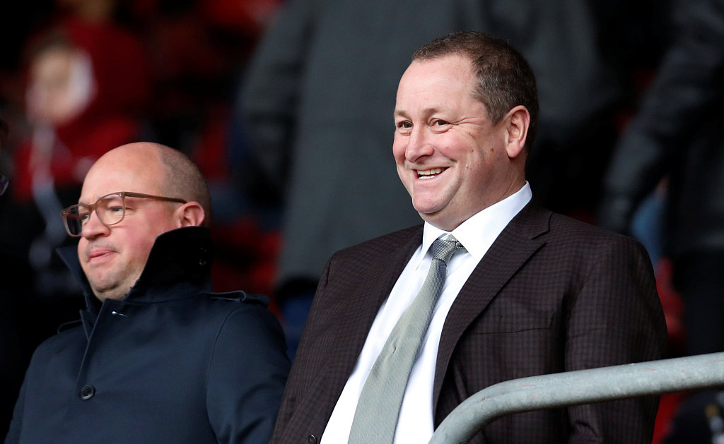 Newcastle United owner Mike Ashley (R) and managing director Lee Charnley watch their team's Premier League match against Southampton, in Southampton, UK, October 27, 2018. /VCG Photo