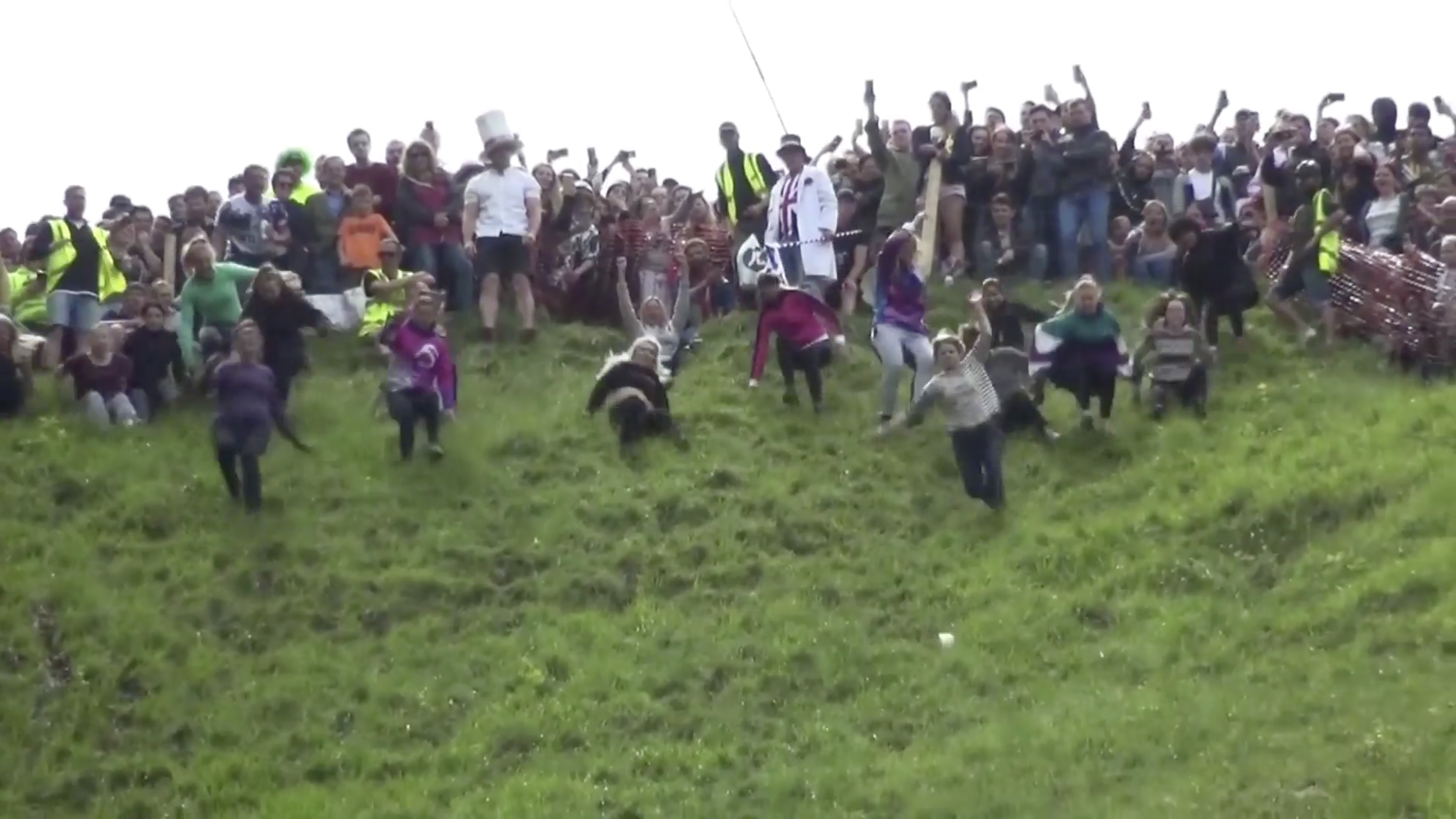 Thousands gathered on Cooper's Hill in Brockworth for the annual Cheese Rolling event in May 2019. The famous event dates back to the 1800s and takes place every late May Bank holiday. Cheeses for the event were made by Smarts of Gloucester and bought by local members of the community.