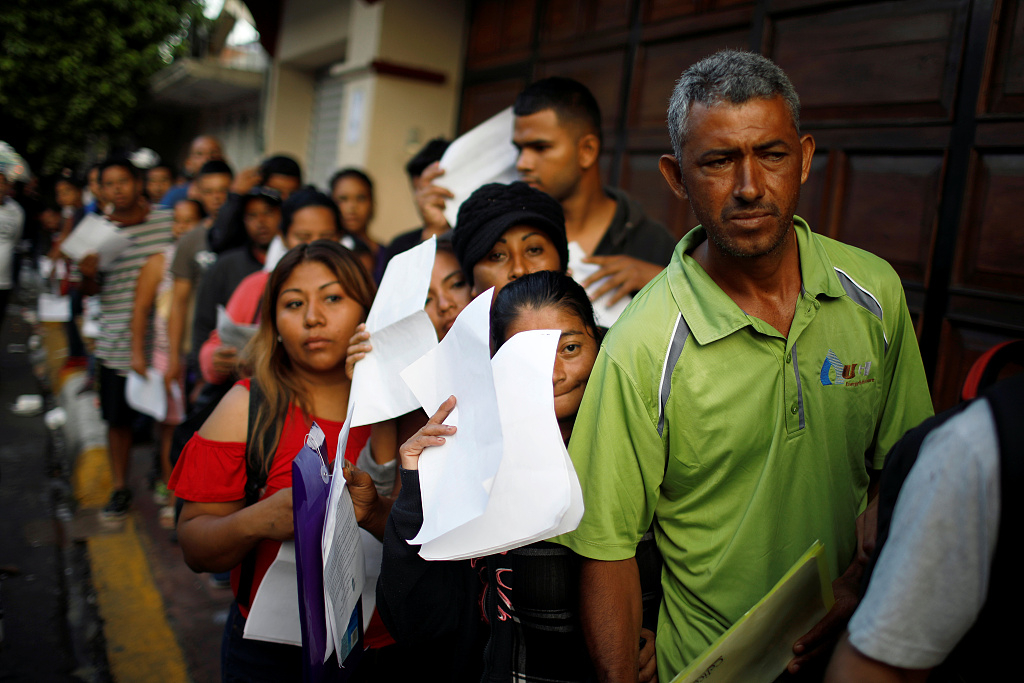 Cuban migrants wait outside the Mexican Commission for Refugee Assistance (COMAR) in Tapachula, Mexico, June 14, 2019. /VCG Photo
