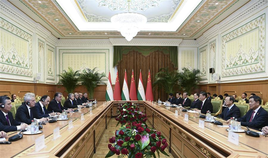 Chinese President Xi Jinping held talks with his Tajik counterpart Emomali Rahmon in Dushanbe on Saturday, after attending a regional security summit that had taken place in the Tajik capital.