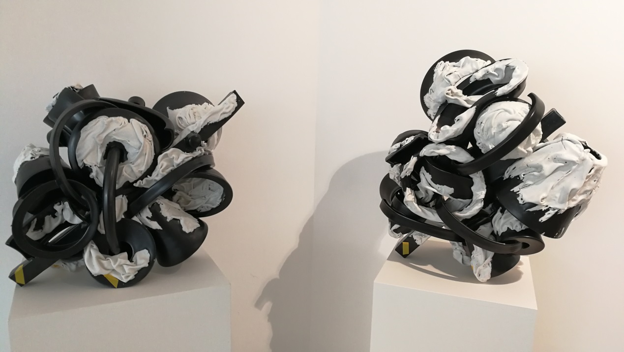 Two ceramic works of Ryan Labar and Liu Xi on display at Beijing’s Muyun Space. /CGTN Photo
