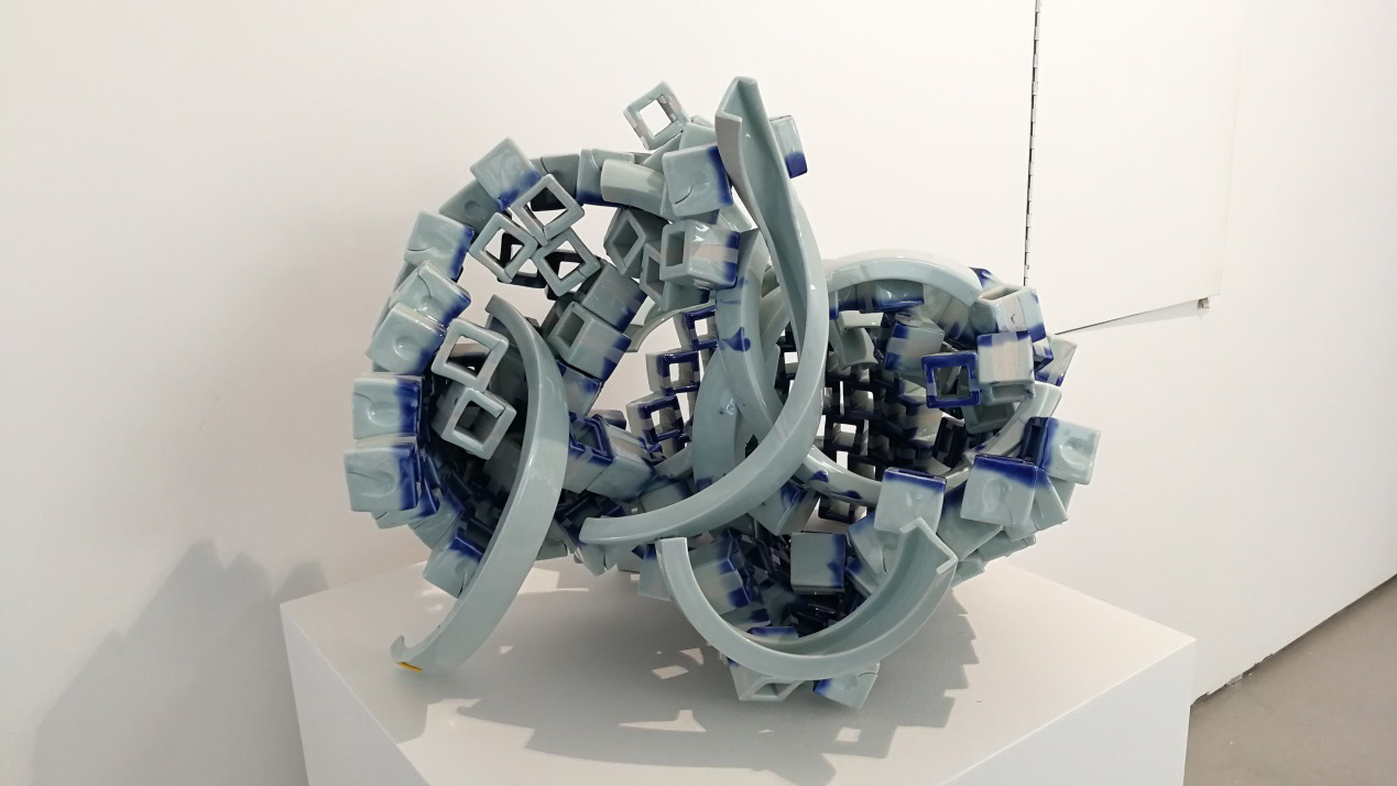 "My work is called 'Floating Clouds and Flowing Water-Dance.' It expresses my reflection on traditional Chinese culture. Ceramics are widely used in our daily life, but how to use this traditional material to create a new art form was a challenge for me," said Zhang.