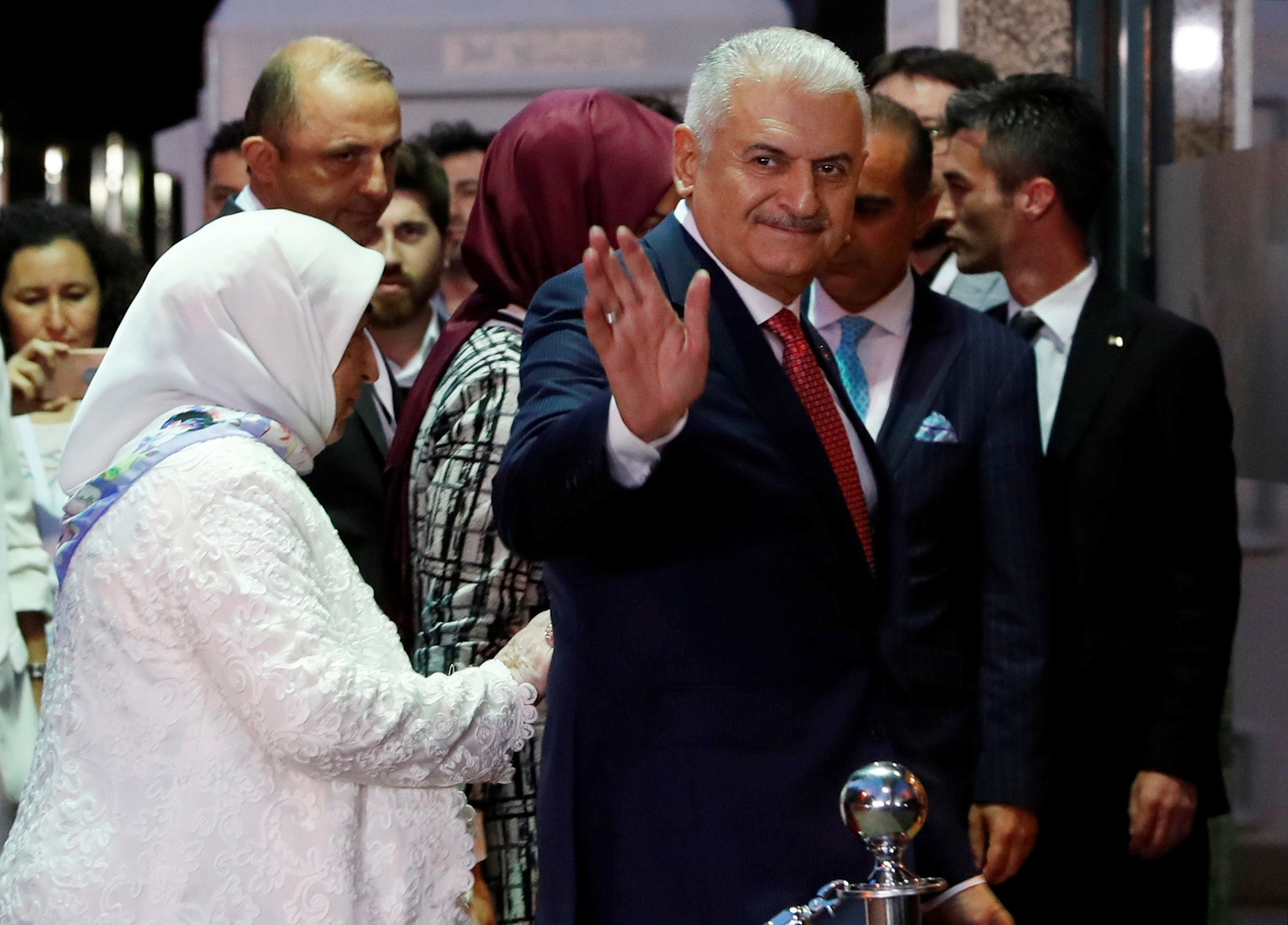 Binali Yildirim (C), accompanied by his wife Semiha Yildirim, arrives at Lutfi Kirdar Convention Center in Istanbul, Turkey, June 16, 2019. /Reuters Photo