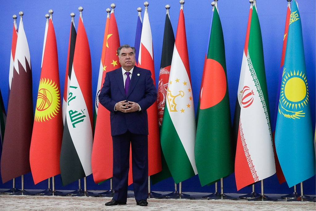 Tajikistan's President Emomali Rahmon at a welcoming ceremony before the 5th summit of the Conference on Interaction and Confidence-Building Measures in Asia (CICA), June 15, 2019. /VCG photo