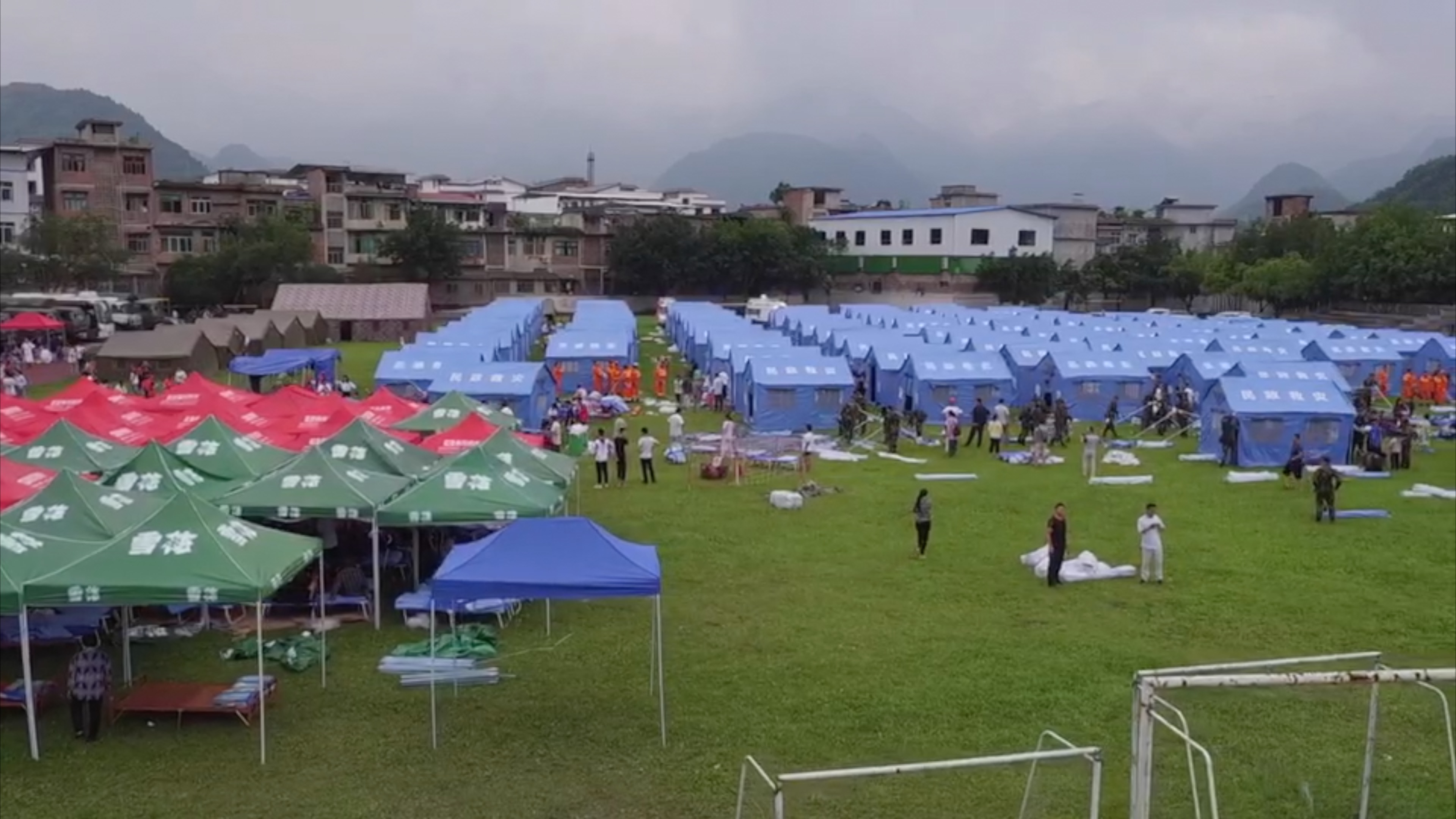 About 10,000 residents were relocated to the playground of Shuanghe Middle School after the 6.0-magnitude earthquake hit Changning County of Yibin City in Southwest China's Sichuan Province. Local departments have dispatched 2,000 tents there for people to rest. Meanwhile, daily necessities like food and water have also been provided to help locals get through the post-earthquake phase.