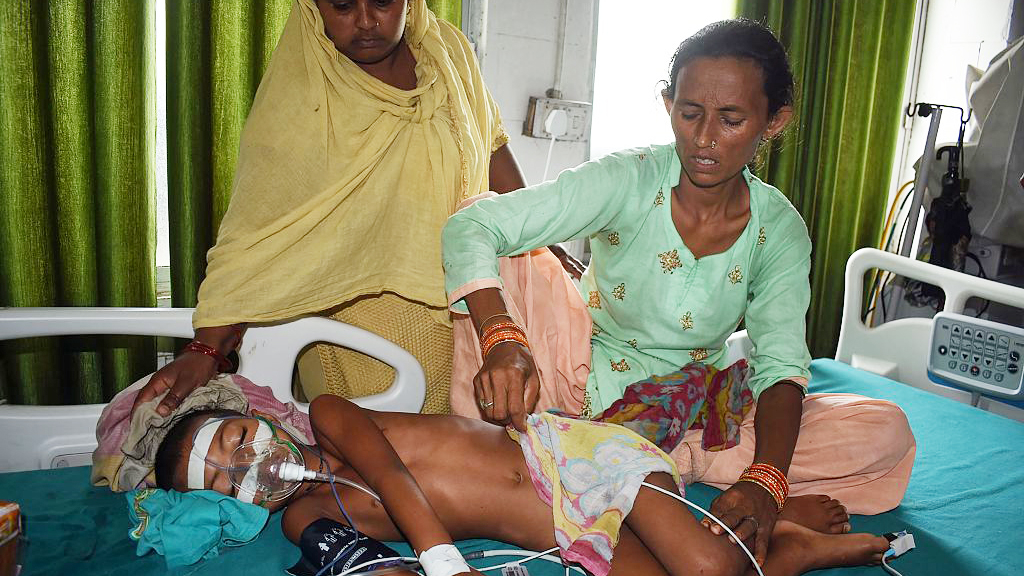 In India, desperate parents have taken to the streets in Bihar State after a brain virus killed over 100 children there. At least 200 patients are still being treated at local hospitals. Bihar State, one of India's poorest areas, has been struggling with an outbreak of encephalitis since the beginning of June. CGTN's correspondent Ravinder Bawa explained.