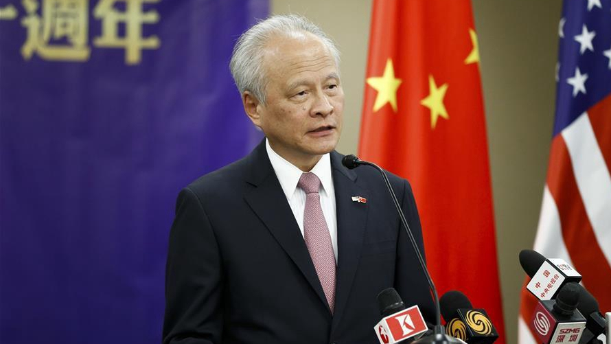 Speaking at an event celebrating the 40th anniversary of the establishment of the bilateral ties, Cui noted that some people have asserted that as China pursues a different development path, it will surely "move America's cheese," or have gone further by clamoring for the "decoupling" of the two countries and even a "new Cold War."