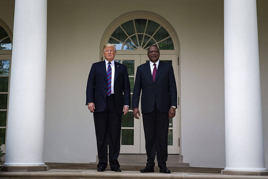 U.S. President Donald Trump and Uhuru Kenyatta, Kenya's president, meet at the West Wing colonnade of the White House in Washington, DC, August 27, 2018. /VCG Photo