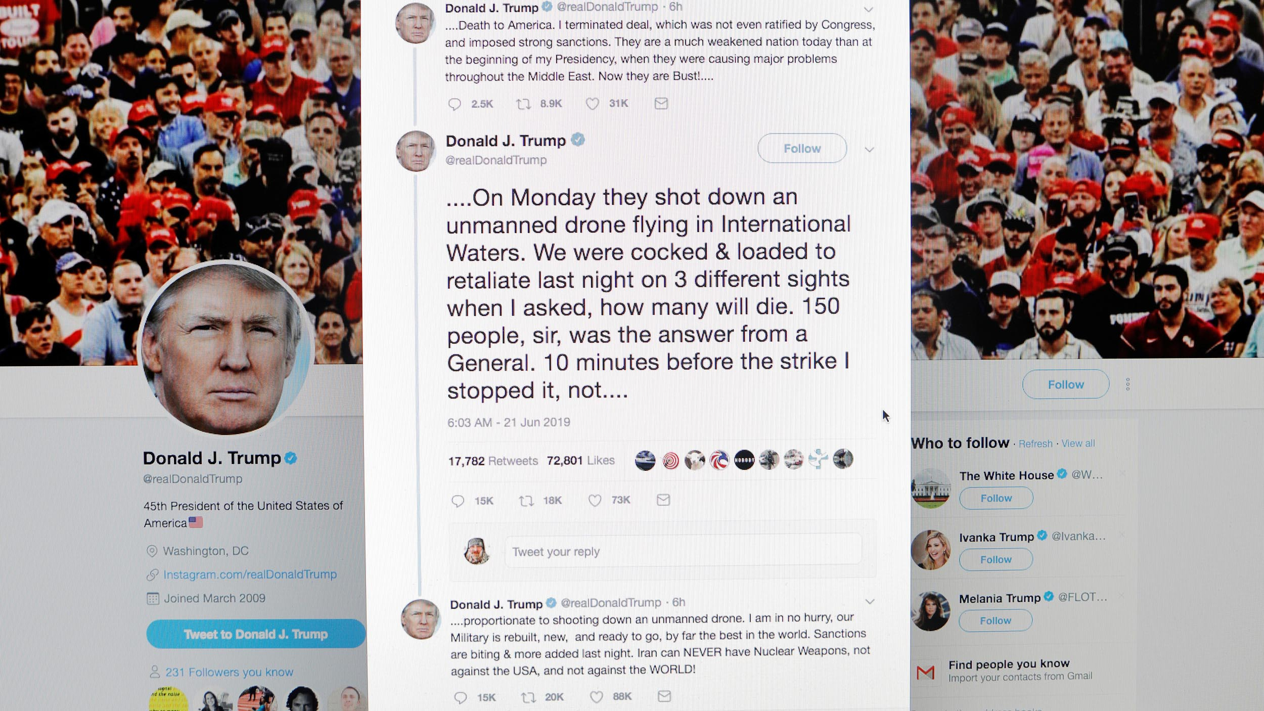 Under pressure to respond to the incident near the strategic Strait of Hormuz, Trump says he aborted a military strike on Iran.