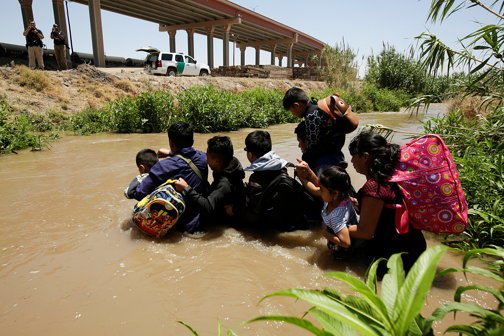 Migrants from Guatemala try to enter into U.S. by crossing the Rio Bravo river in Ciudad Juarez, Mexico, June 11, 2019. /VCG Photo