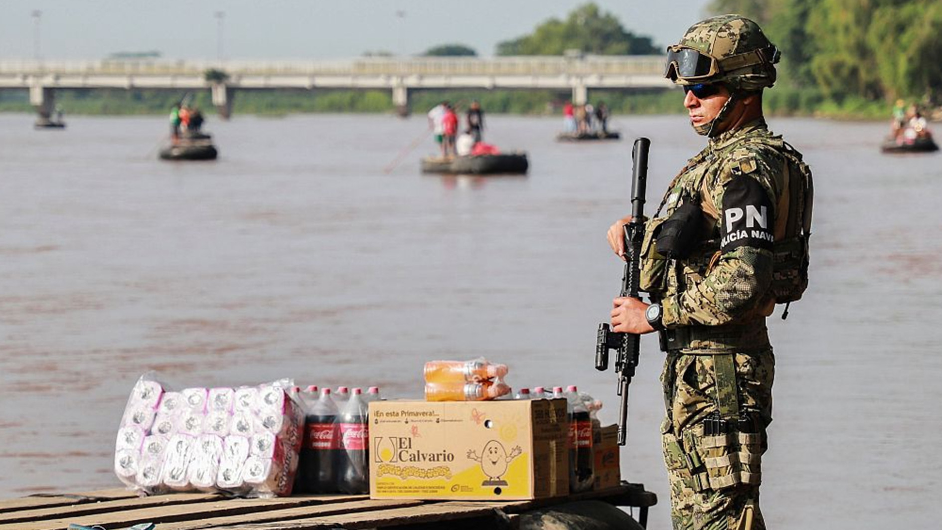 Mexican National Guard members prevent Central American migrants from crossing the Rio Bravo river, in Ciudad Juarez, State of Chihuahua, June 21, 2019. /VCG Photo