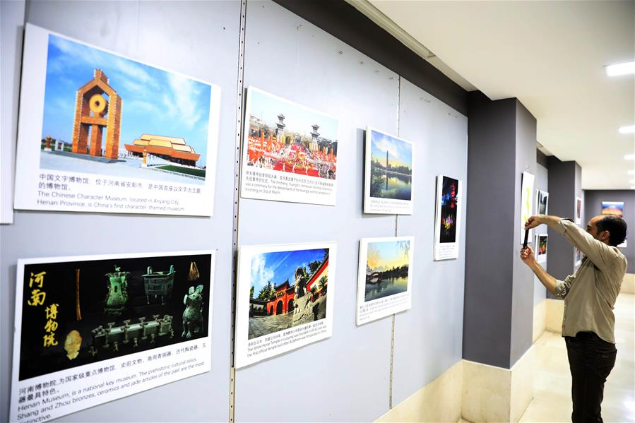 Visitors at a photo exhibition of China's Henan Province in Cairo, Egypt, June 22, 2019. /Xinhua Photo