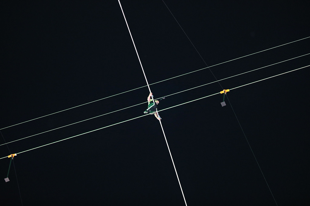 They walked toward each other, talking with their father through a communication system in a live ABC broadcast. "This has been my life, longer than I've been alive," Nik said in his wire walk. /VCG Photo