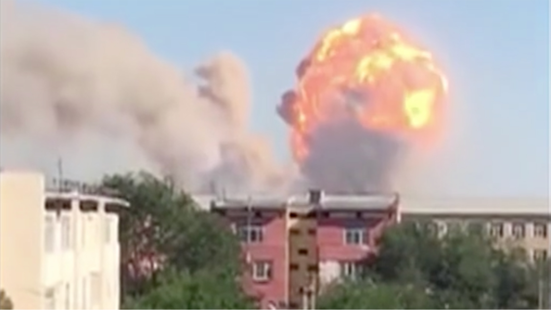 A series of massive blasts have hit at an ammunition warehouse close to a residential area in the south of Kazakhstan. Local officials have not yet released any information regarding casualties and the cause of the explosions remains unclear.