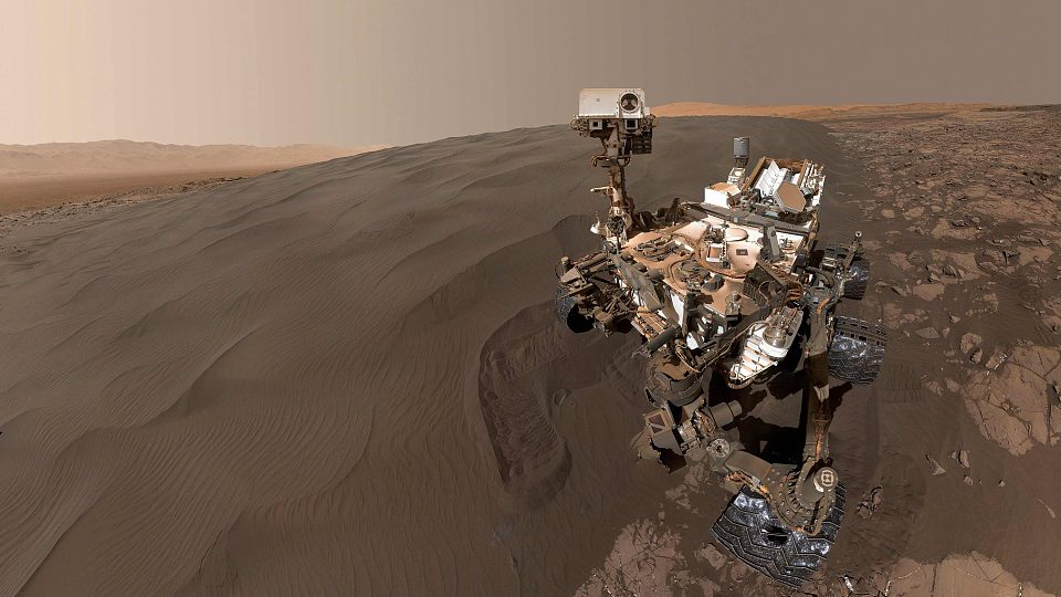 A self-portrait of NASA's Curiosity Mars rover vehicle at "Namib Dune," where the rover's activities included scuffing into the dune with a wheel and scooping samples of sand for laboratory analysis. /VCG Photo