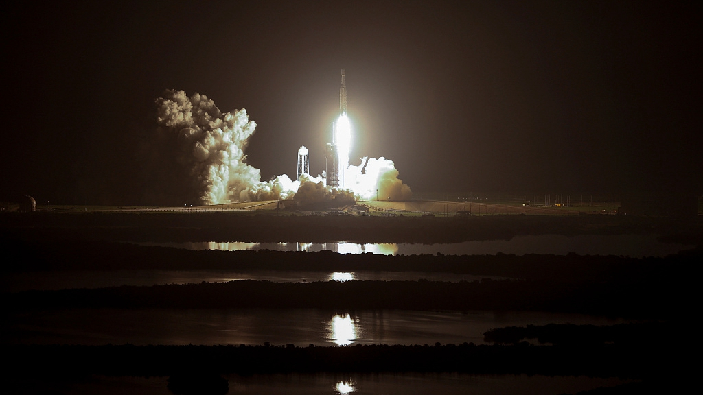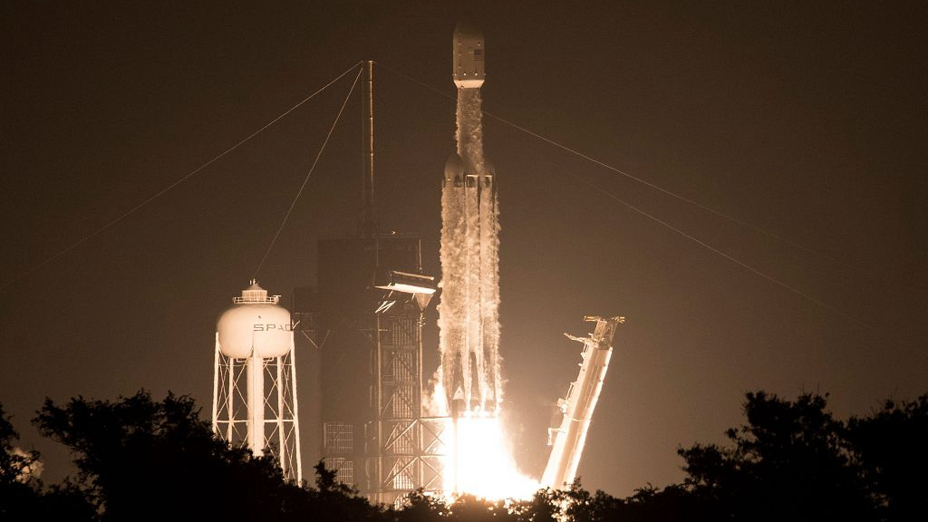 SpaceX launched its Falcon Heavy rocket on Tuesday from Kennedy Space Center in Florida, carrying 24 experimental satellites. / VCG Photo