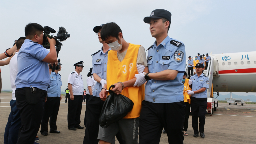 The 63 suspects sent back to China are all Chinese nationals. This is the first time for local police in Chongqing to bring suspects from abroad with a chartered plane.
