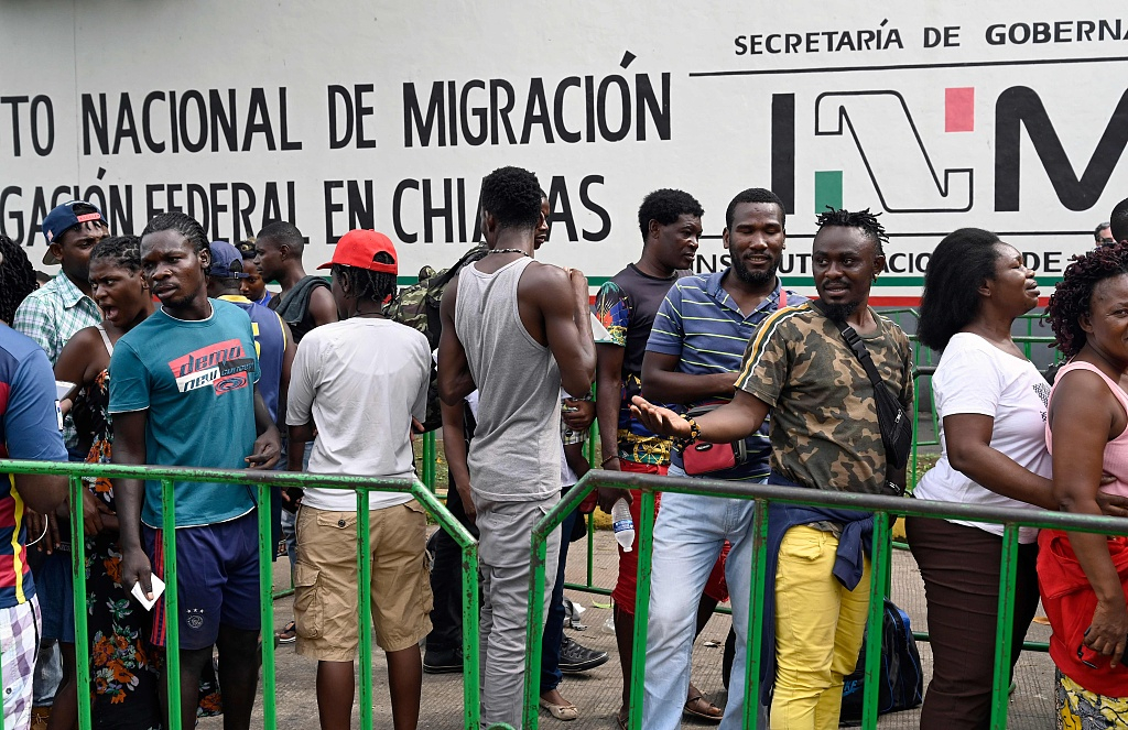 Migrants of several nationalities queue outside the Mexican National Institute of Migration in Tapachula, Chiapas State, Mexico, June 20, 2019. /VCG Photo