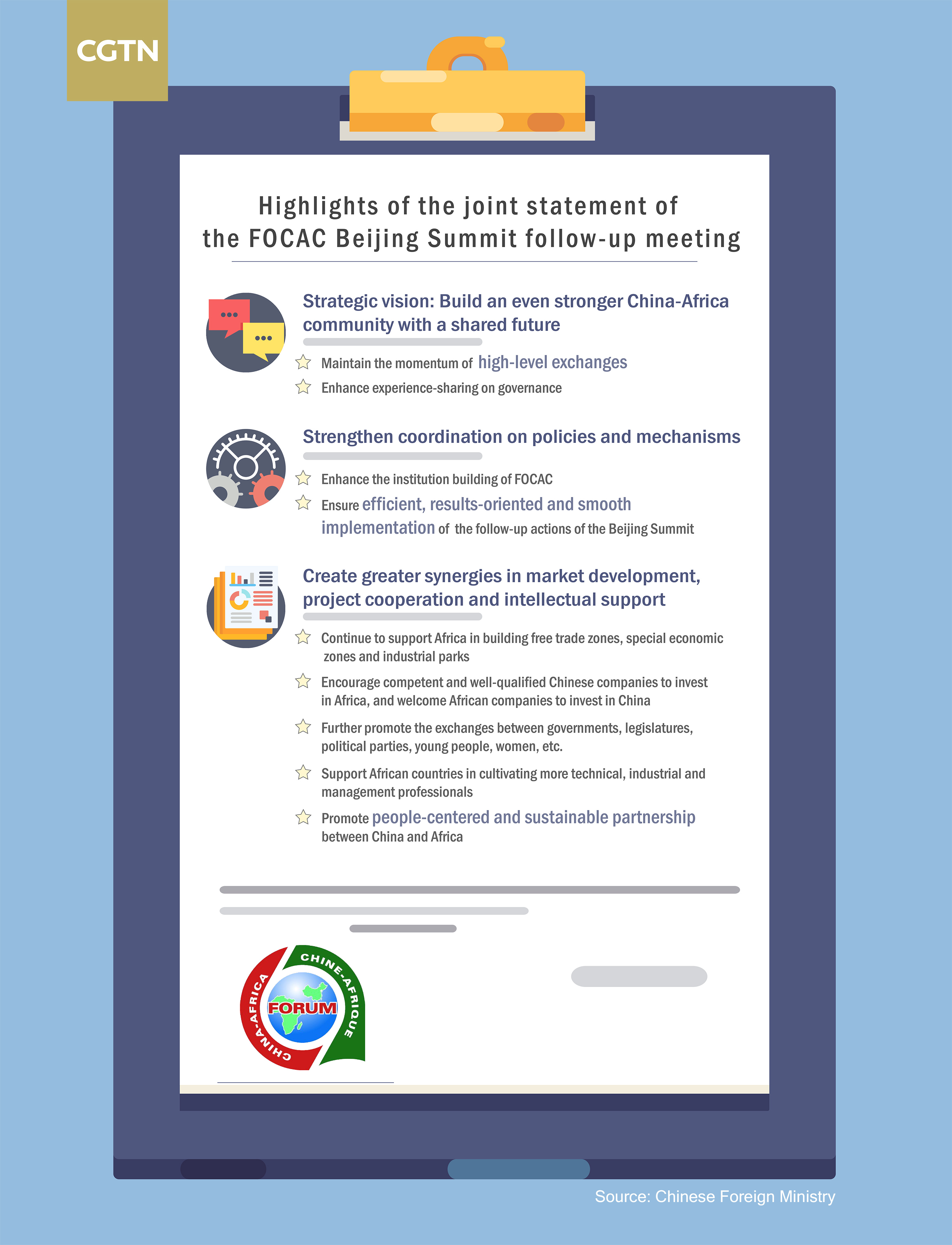 Below is a pile-up of highlights of the joint statement of FOCAC Beijing Summit follow-up meeting.