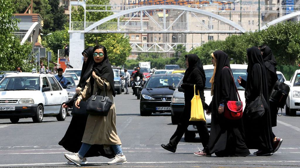 Iranian women cross a road in the Iranian capital Tehran on June 15, 2019. /VCG Photo