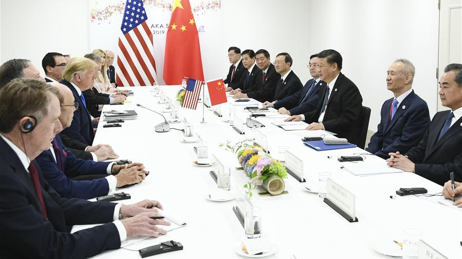 Chinese President Xi Jinping meets with U.S. President Donald Trump in Osaka, Japan, June 29, 2019. /Xinhua Photo