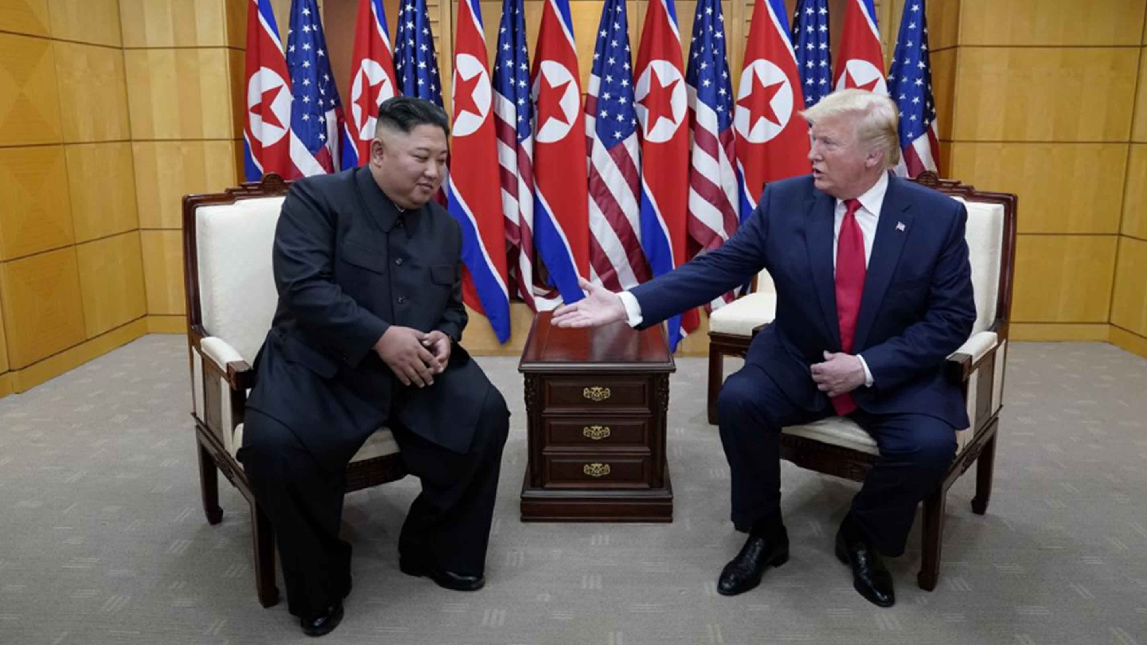 U.S. President Donald Trump met and shook hands with DPRK leader Kim Jong Un, making him the first sitting U.S. president to enter the Korean Demilitarized Zone (DMZ). President Trump crossed the military demarcation line to the DPRK side alongside Kim. Both leaders then walked to the Republic of Korea (ROK) side and answered questions from journalists.
