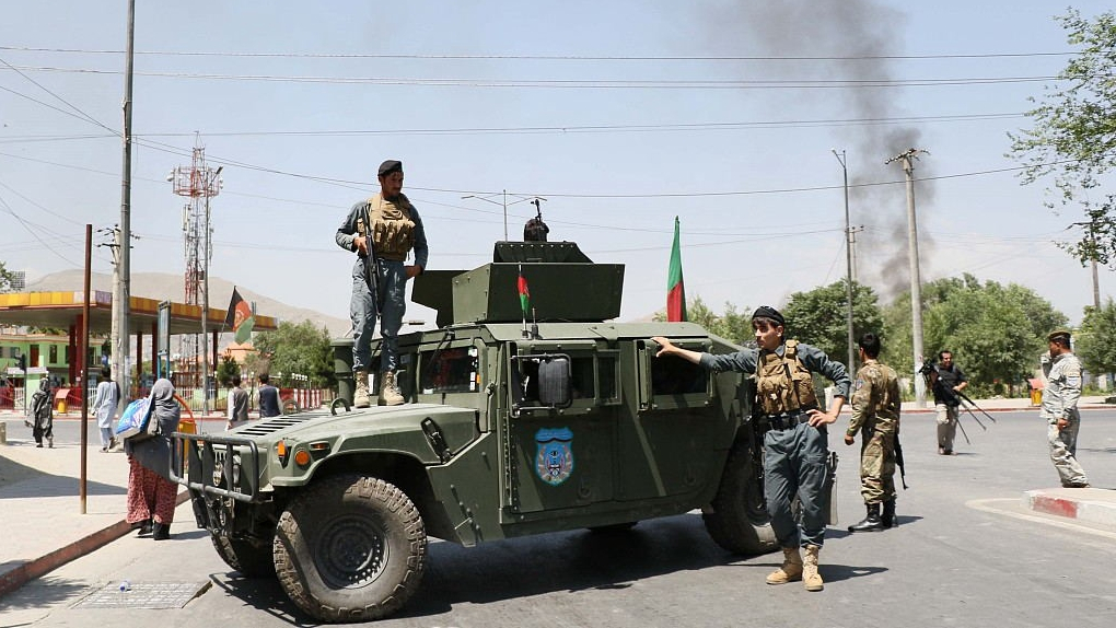 Afghan security officials secure the scene of a suicide bombing in Kabul, Afghanistan, July 1, 2019. /VCG Photo