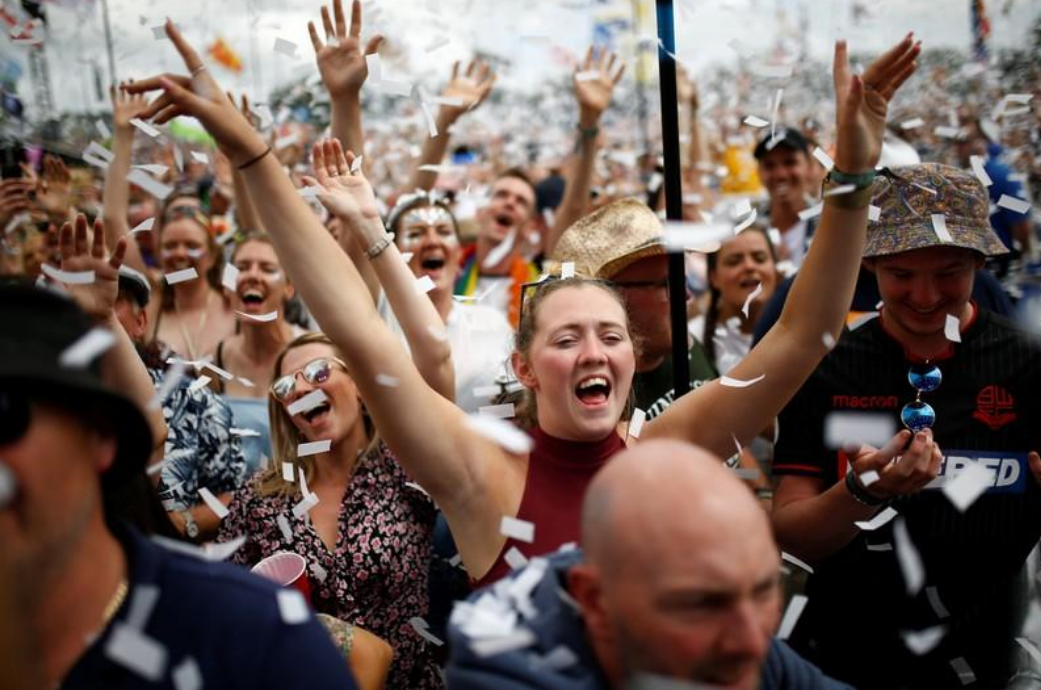 Revelers watch Years & Years performing during Glastonbury Festival in Somerset, Britain, June 30, 2019. /Reuters Photo
