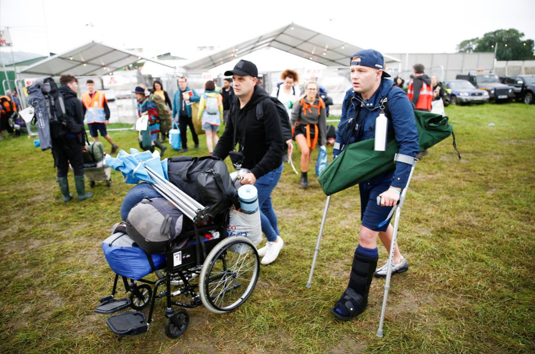 People carry their possessions as they arrive for Glastonbury Festival at Worthy Farm in Somerset, Britain, June 26, 2019. /Reuters Photo