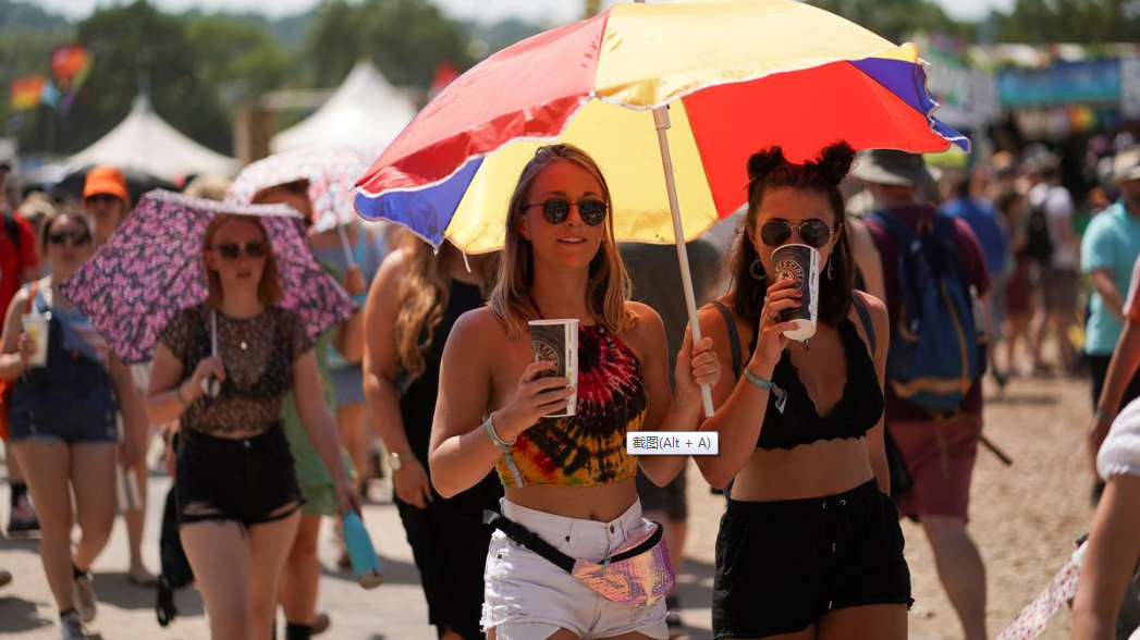 Long queues formed at some locations as people tried to keep hydrated in blazing sunshine at Worthy Farm in southwest England on Friday and on Saturday, as the temperature hit 25 Celsius.
