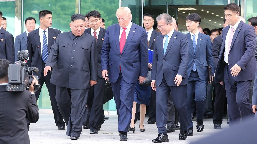 Kim and Trump met in the ROK side of the inter-Korean border village of Panmunjom on Sunday, after a surprising invitation by U.S. President Trump the previous day through his Twitter message.
