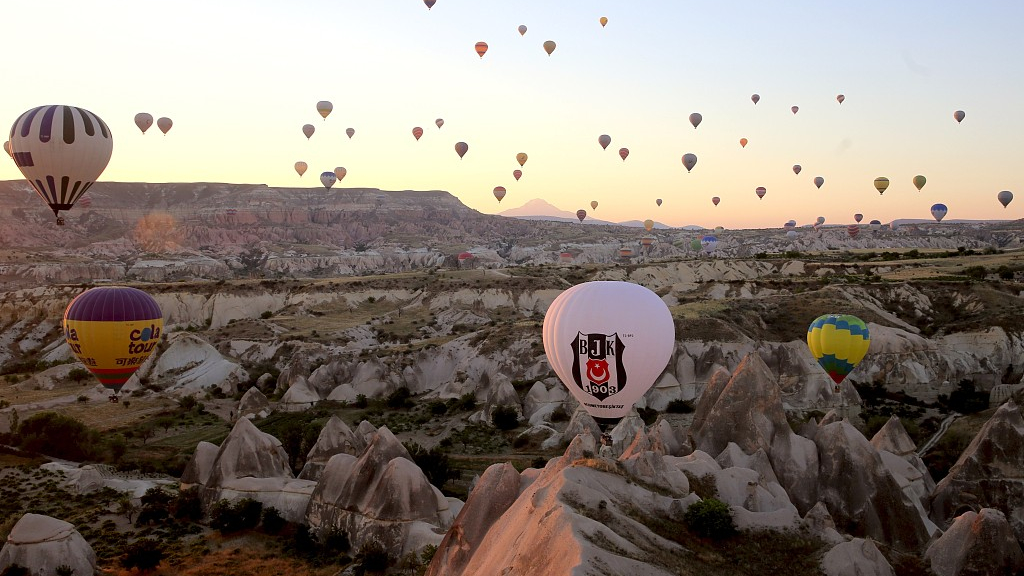 Hot air balloons took to the skies over the historical Cappadocia region, located in Nevsehir province of Turkey on Wednesday as the hot balloon festival kicked off for the first time in the leading tourism spot. /VCG Photo