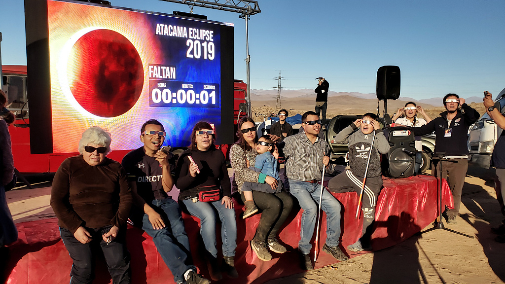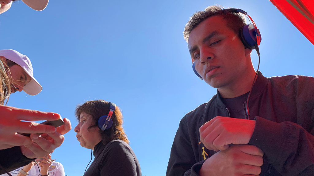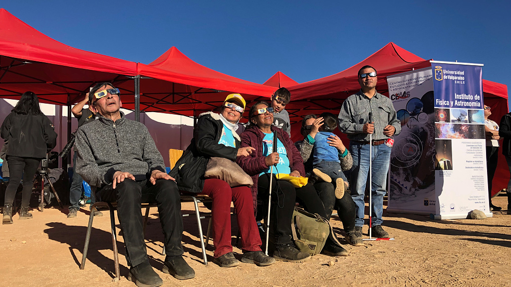 Blind people in Cachiyuyo, Chile, "listened" to the rare phenomenon, which was the first since the Great American Eclipse of August 2017, through the sound-making device on Tuesday. /VCG Photo