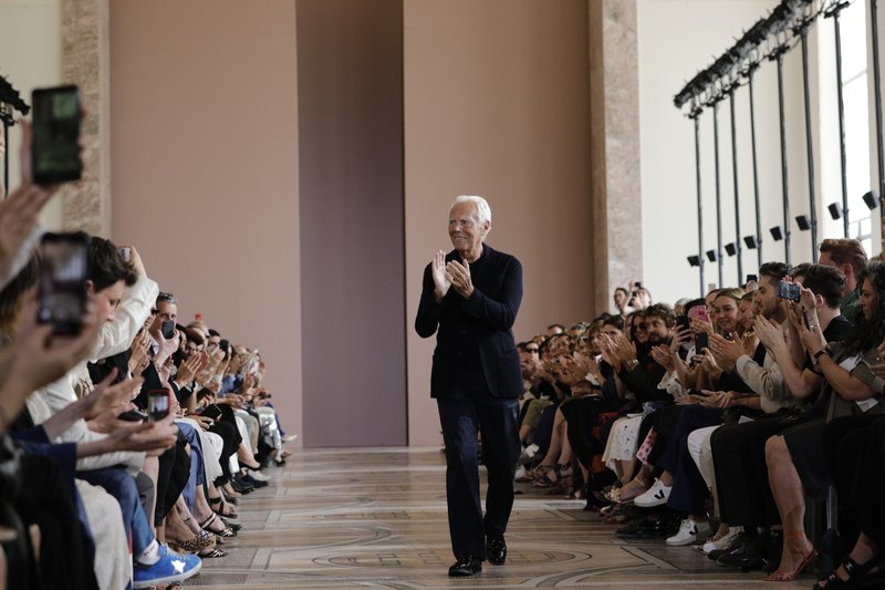Designer Giorgio Armani accepts applause at the end of the Armani Prive Haute Couture Fall-Winter 2020 fashion collection presented in Paris, July 2, 2019. / AP Photo