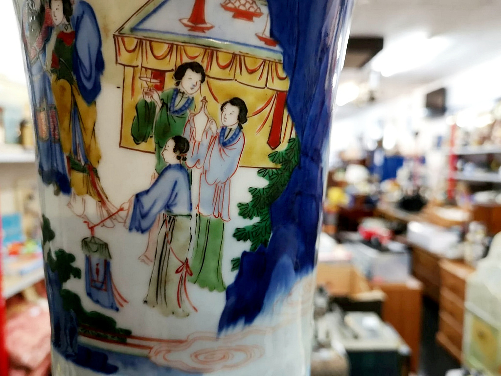 An old and dusty vase discovered at a Devon loft in the UK, originally valued at 50 British pounds (63 U.S. dollars), was sold for 12,000 British pounds (15,098 U.S. dollars) to a Chinese buyer over a telephonic auction. The vase is believed to be Chinese in origin. The owner of Michael Prowse of Pilton Auctions, where the vase was sold, said that he didn't think too much to the vase when he first saw it. He said: "It looked quite old, but I had thought it was probably around 150 years old or so. After the auction, I suspect it is older, probably 200-300 years old." However, there are no records to show where the item came from or why it is considered so valuable. / (VCG Photo)