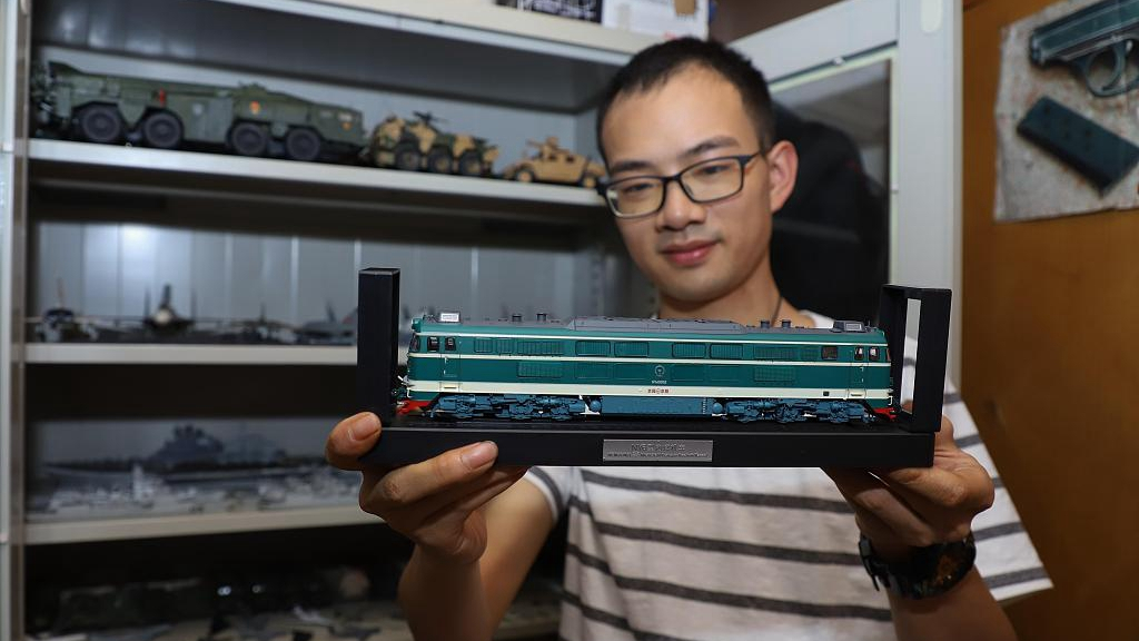 The collection of the 27-year-old, a bullet train technician at a maintenance center in Guiyang, includes steam, diesel and electric locomotives as well as bullet trains. /VCG Photo