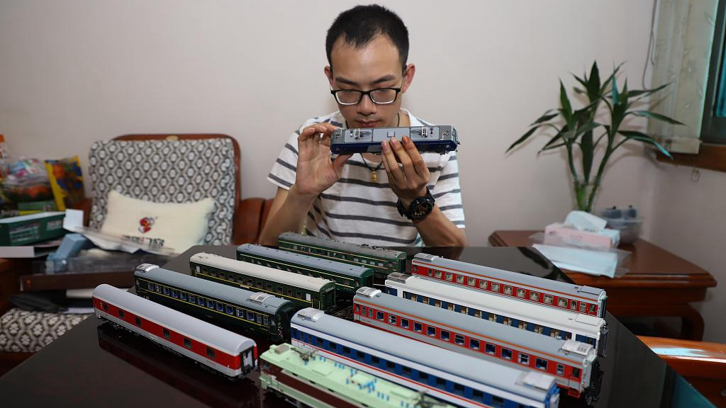 Zhang Yuqi, a rail fan from Guiyang City, capital of southwest China's Guizhou Province, has collected more than 100 model train kits over the past seven years. /VCG Photo