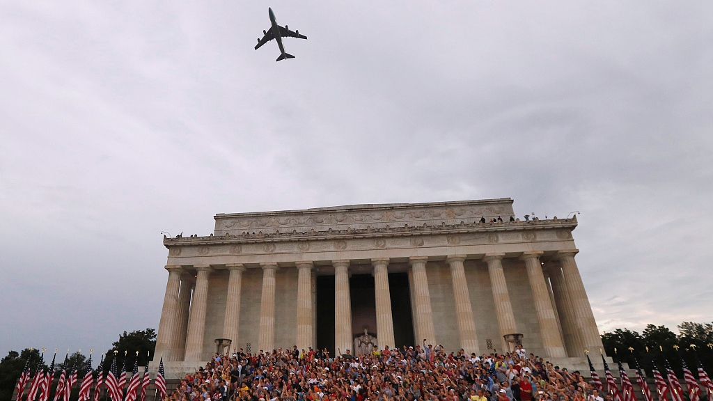 Attendees at the "Salute to America" event during Fourth of July Independence Day celebrations at the Lincoln Memorial in Washington, DC, U.S., July 4, 2019. /VCG Photo