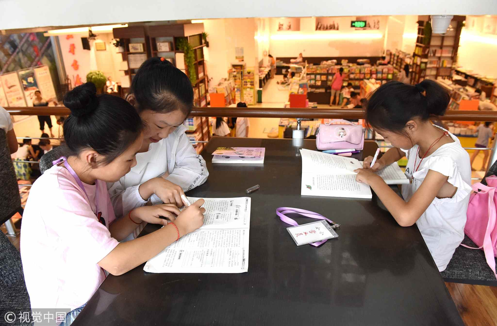 Schoolchildren borrow tutoring books to complete their summer homework at Xinhua Bookstore in Linyi, east China's Shandong Province, July 19, 2018. /VCG Photo