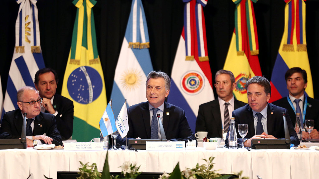 Argentine Foreign Minister Jorge Faurie speaks during a working session at the Mercosur trade bloc summit in Mendoza, Argentina, July 21, 2017. /VCG Photo