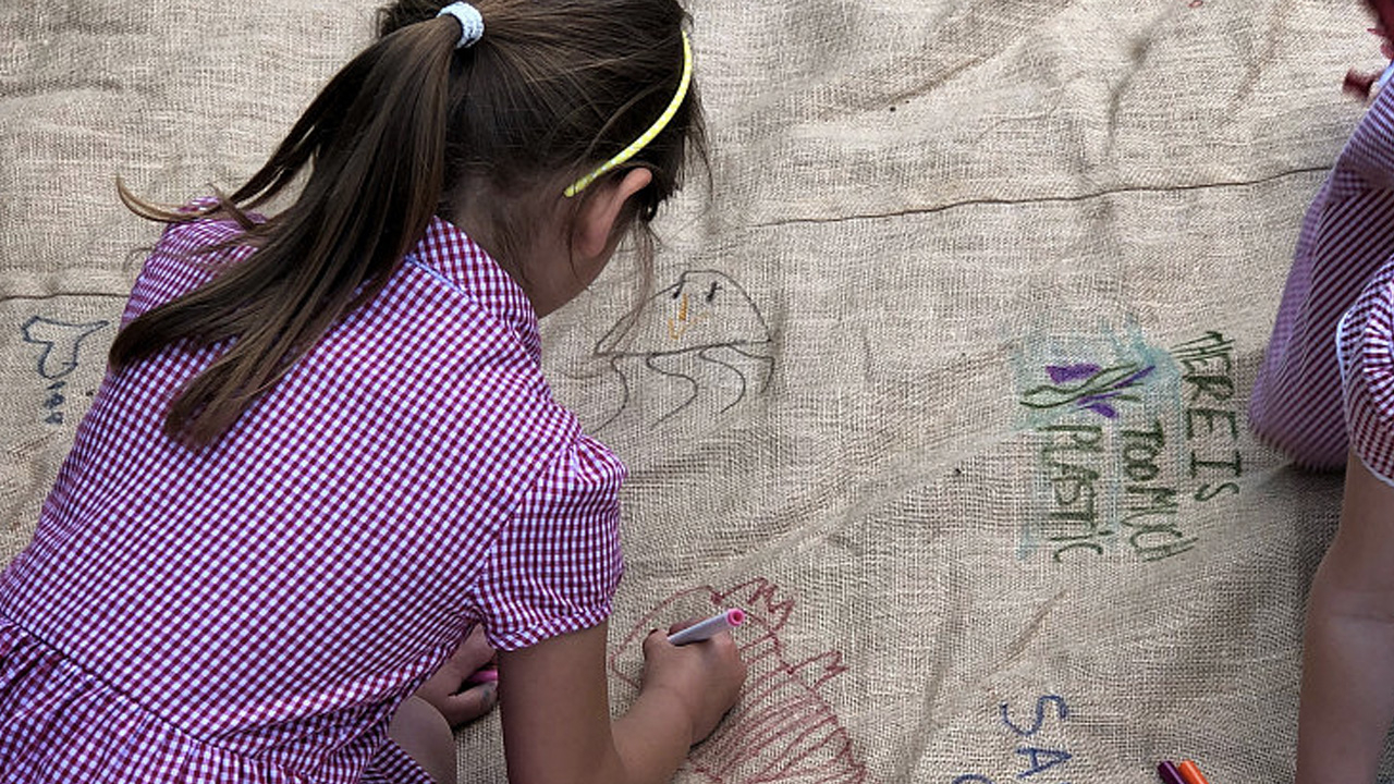 In the coming weeks, the bag will be cut up into smaller pieces and given to the children so that they can make their own smaller bag from the material. /VCG Photo