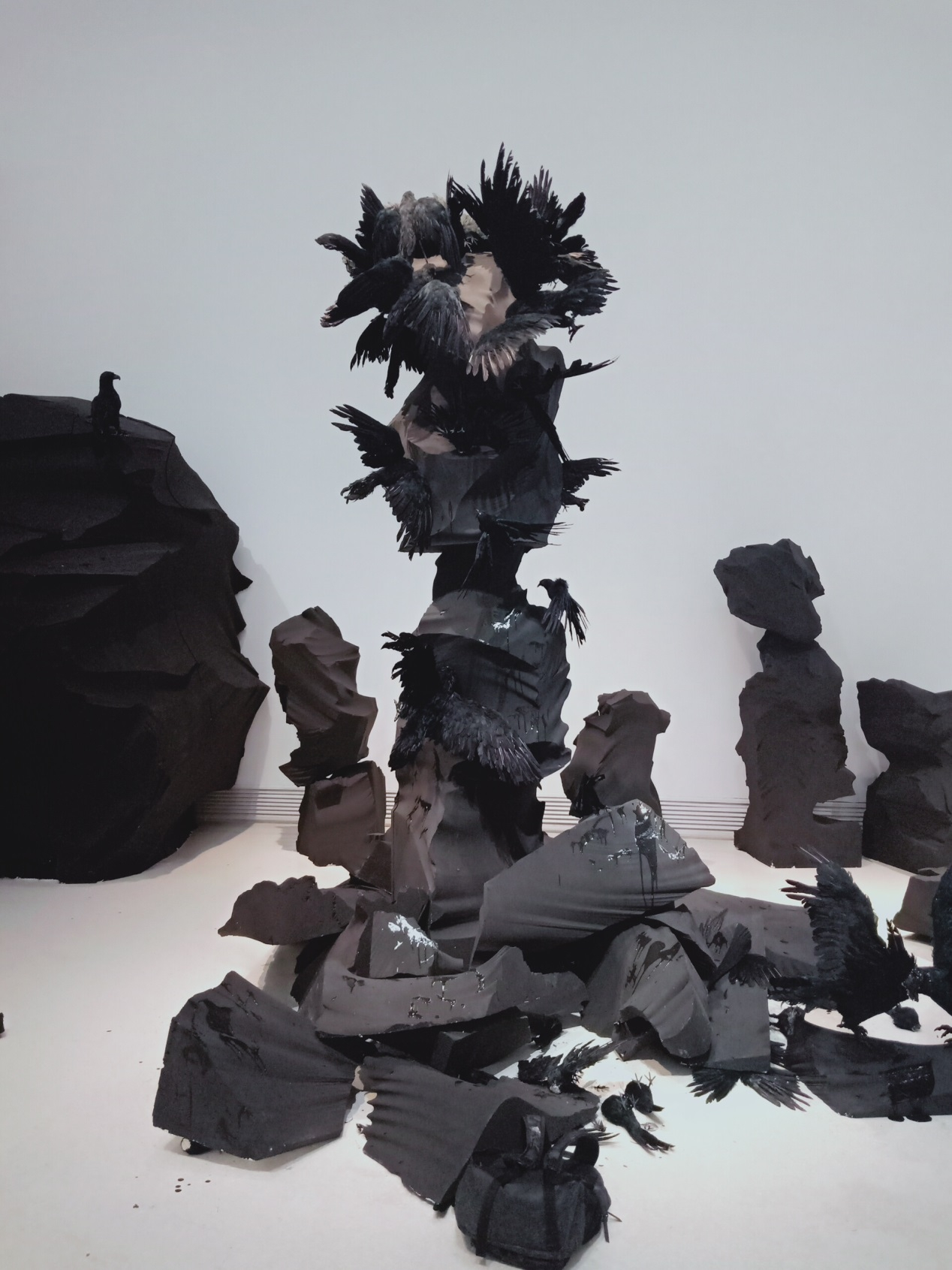 Other artists have tried new approaches for this exhibition, like the installation "Black's Three Parables." It represents the largest scale of work Chinese artist Liu Ya has done. Spending four days with his team on the piece, Liu said the simple color and scenes can trigger great imagination. "I wanted to create an installation about the color of black and chose the two substances of birds and stones. I'd like the viewers to have their own interpretation of the piece. Many of them think it's a cool installation, and some even see it as a reflection of the plague. I like their perspectives."