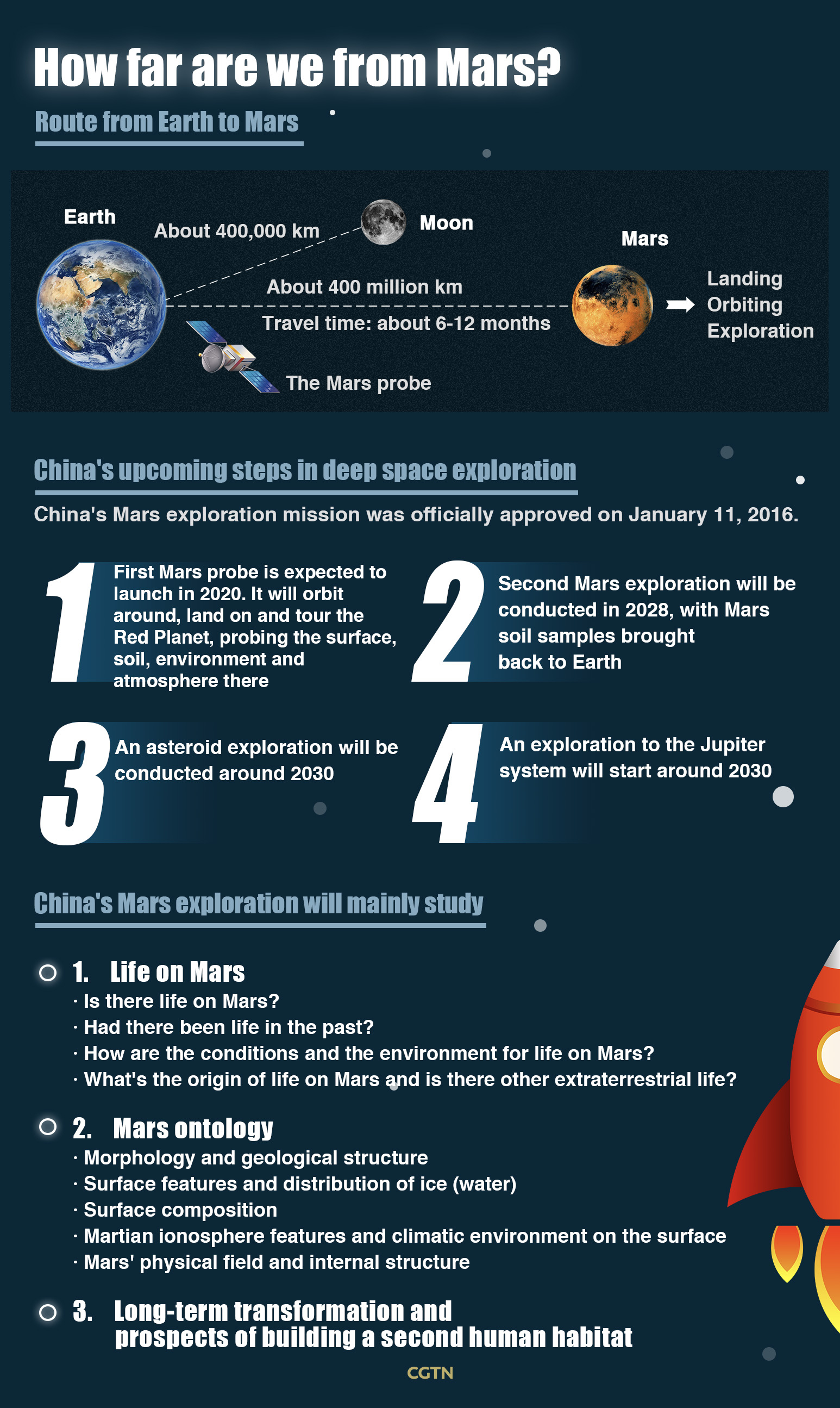 The mission includes orbiting, landing and roving the Martian surface, an unprecedented achievement that shows China's innovative spirit in space exploration and courage to face great challenges, according to Chinese space experts.