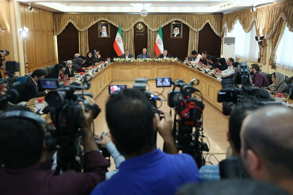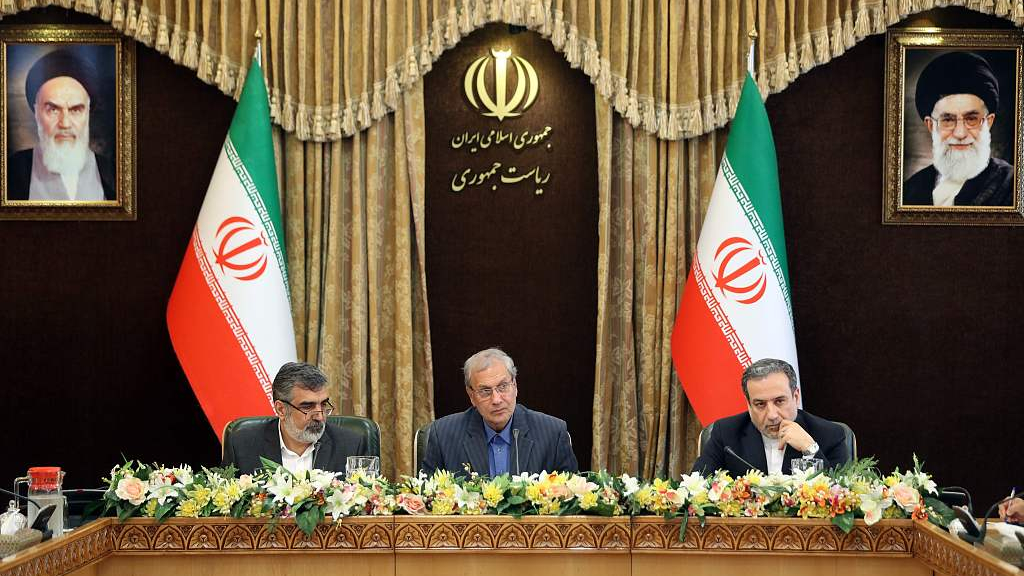 Iran's Atomic Energy Organization spokesman Behrouz Kamalvandi, government spokesman Ali Rabiei, and Deputy Foreign Minister Abbas Araghchi giving a joint press conference at the presidential headquarters in the capital Tehran on July 7, 2019. /VCG Photo