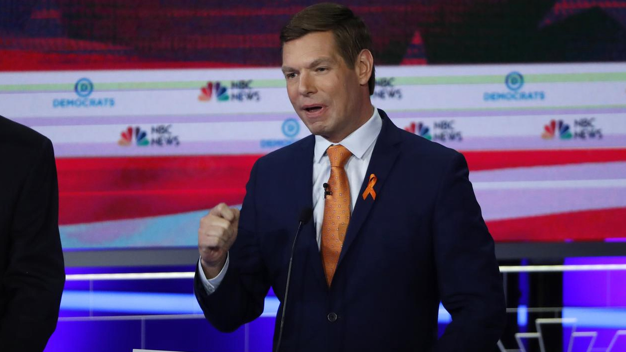 Swalwell was one of the more aggressive candidates on the Democratic debate stage last month, challenging former vice president Joe Biden, 76, to "pass the torch" to a younger generation.