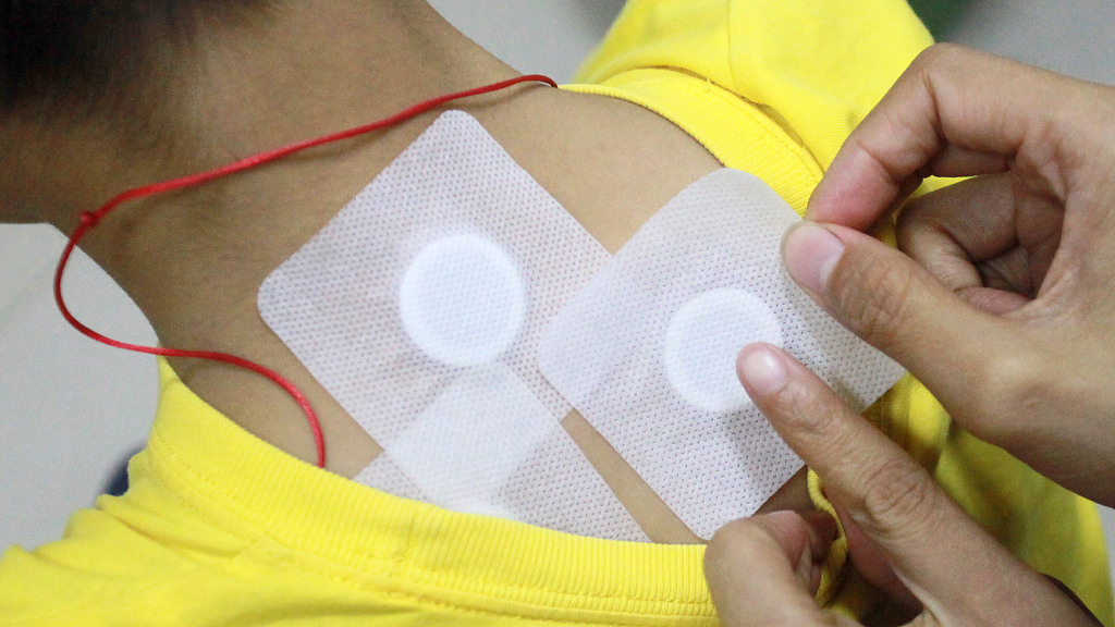 The patch, also known as Sanfutie, is a bandage filled with Chinese herbal medicine. Doctors will apply the patch on different acupoints according to the symptoms. /VCG Photo