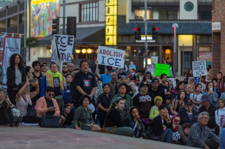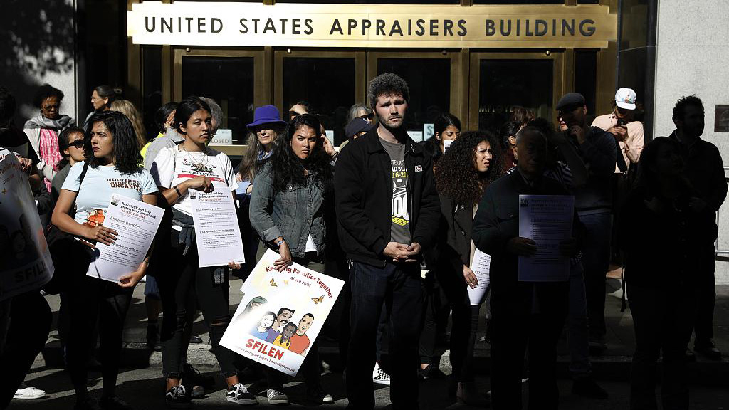 People rally against a Trump administration plan for the Immigration and Customs Enforcement agency to use an Oklahoma military base as a detention center for detained migrant children, Los Angeles, U.S., June 2019. /AFP Photo