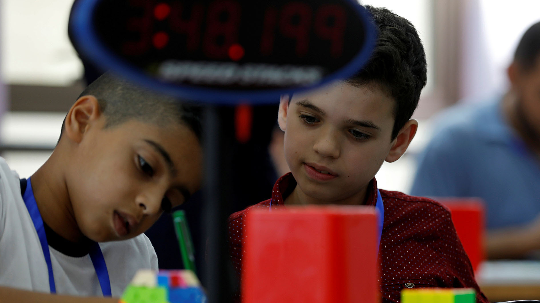 Eighty-eight young Rubik's cube enthusiasts have been competing with one another in the Palestinian city of Ramallah, where contestants aged between six and 22 raced to solve nine different cubes. Ten-year-old Adam Tiro set a new record for solving the 3x3 Rubik's cube in 12.6 seconds. The cube is named after its Hungarian inventor Erno Rubik who developed his best-selling toy more than four decades ago.