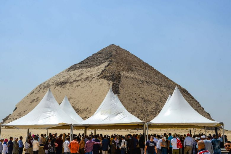 People gather during an inaugural ceremony in front of the Bent pyramid of King Sneferu. /AFP Photo
